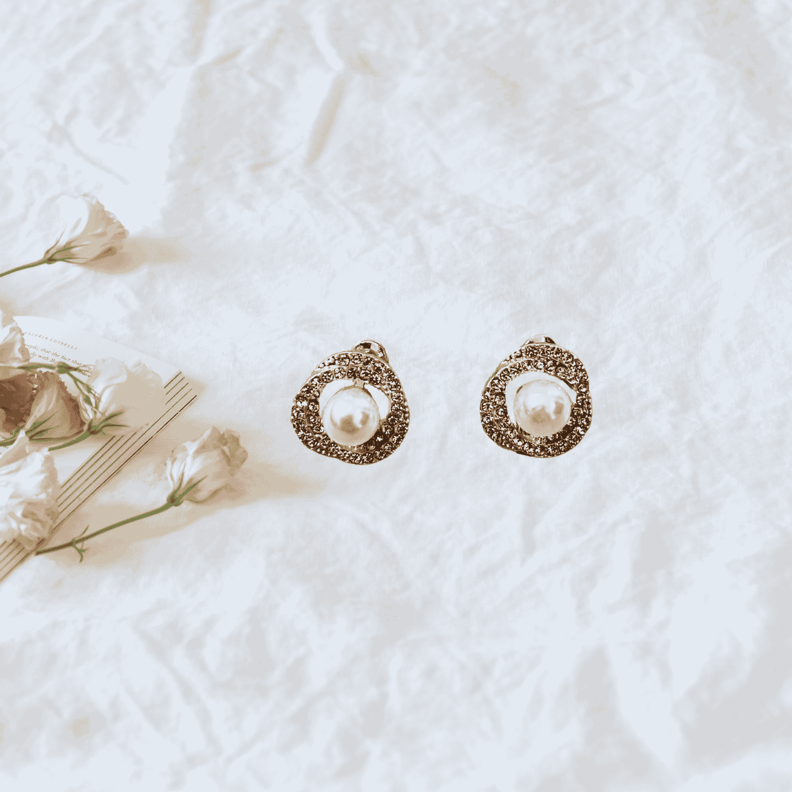 Add a touch of sophistication to your look with these Elegant Pearl and Crystal Halo Stud Earrings, perfect for any occasion.